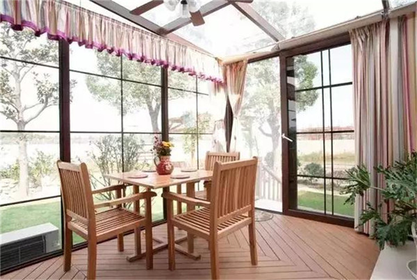 陽光房跟門窗都是一樣的,如果我們擁有陽光但是噪音阻止不了在室外是很影響體驗的,所以在購買的時候應該選定,中空玻璃+鋼化夾膠安全玻璃,不僅僅隔音性好,安全也能得到保障。